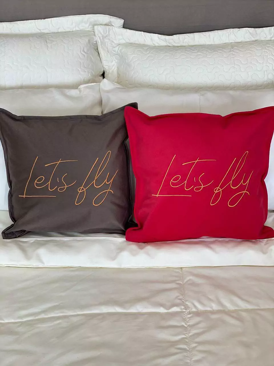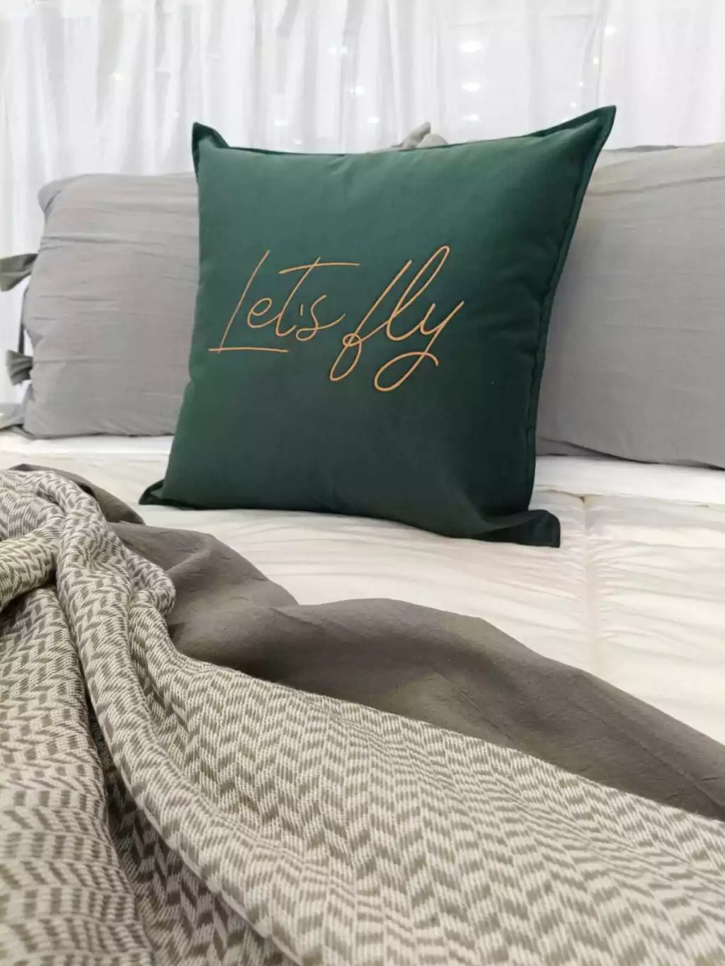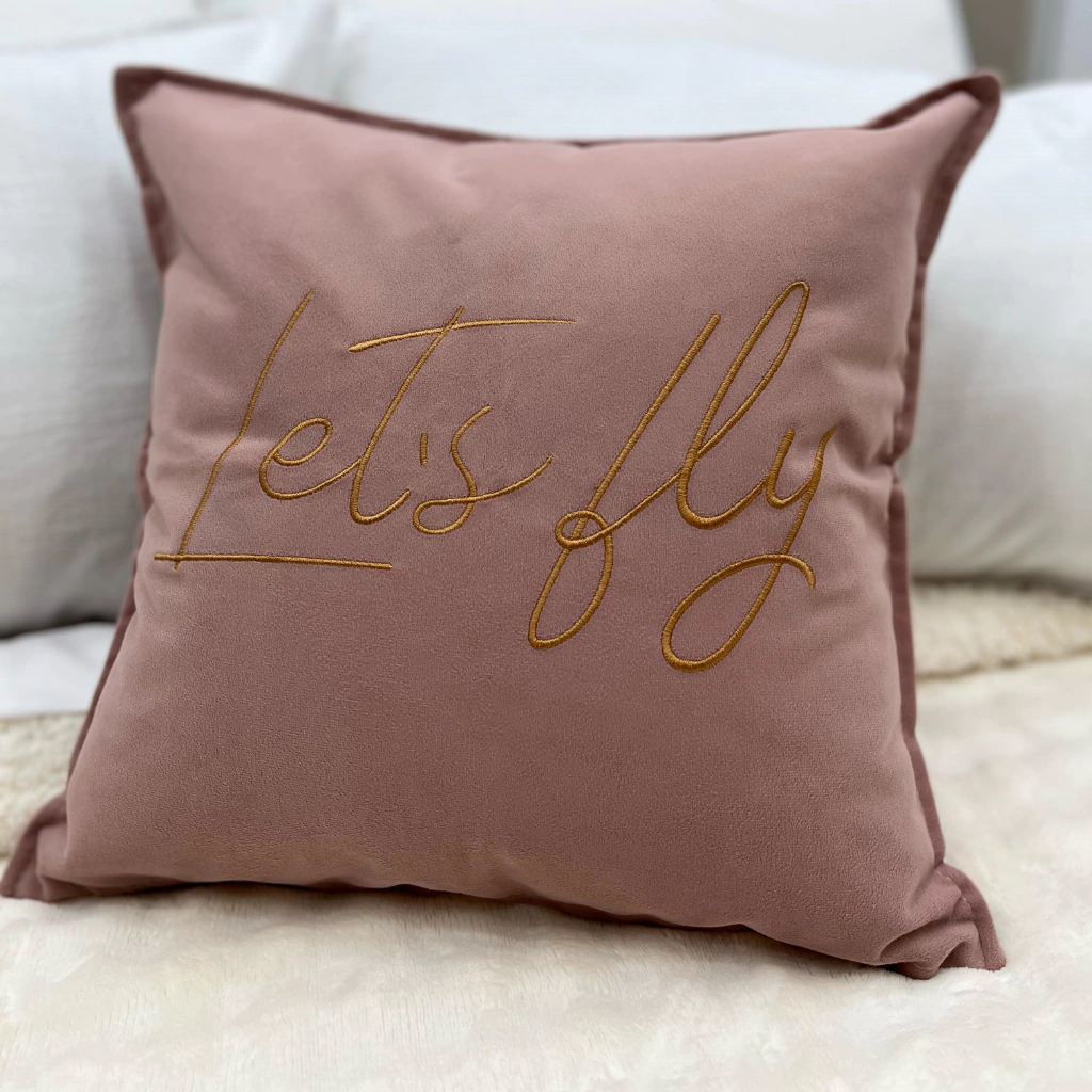 Transforma tu espacio con nuestro Almohadón de Pana 40x40cm, que presenta una encantadora frase bordada: "LETS FLY".