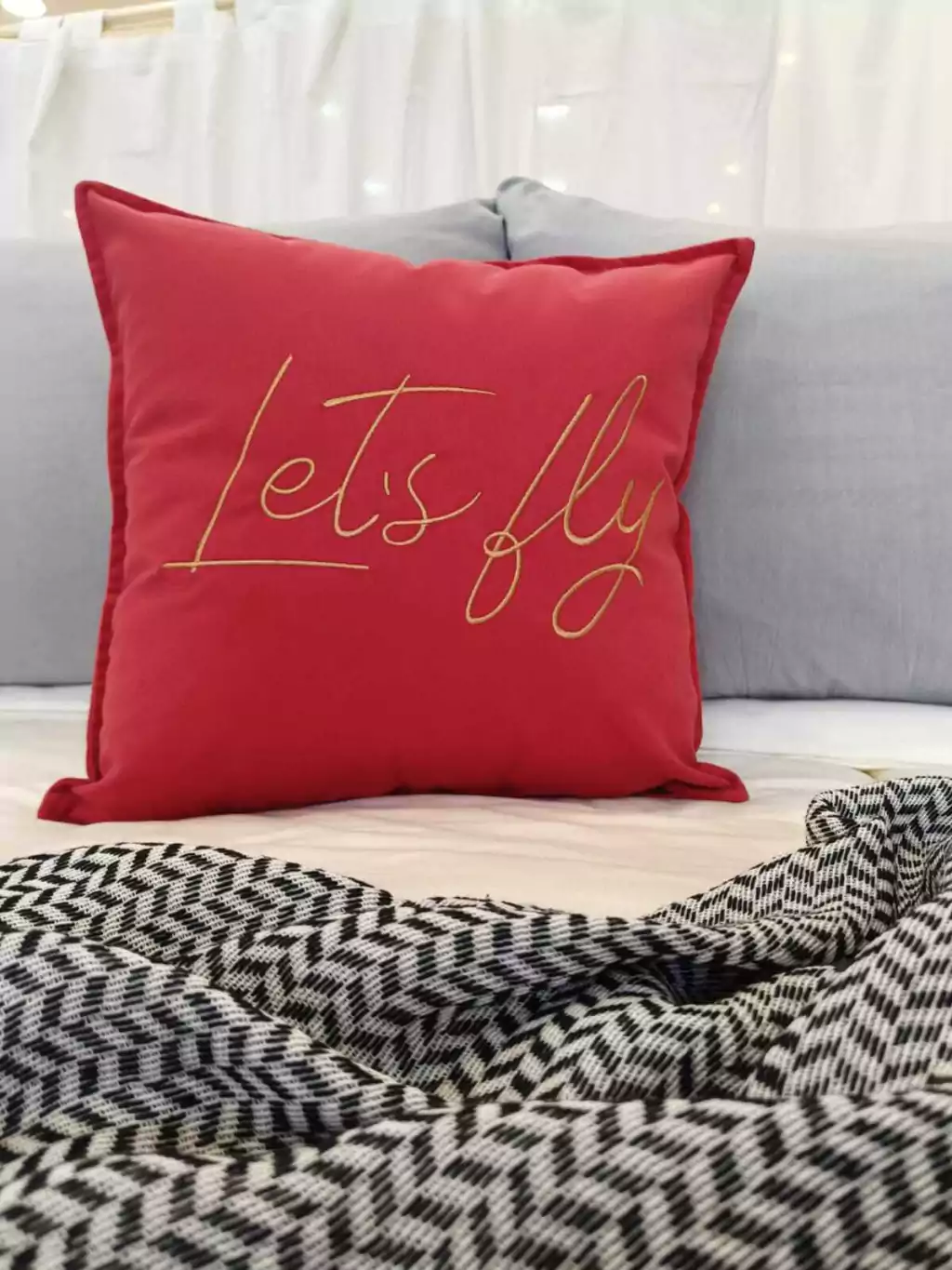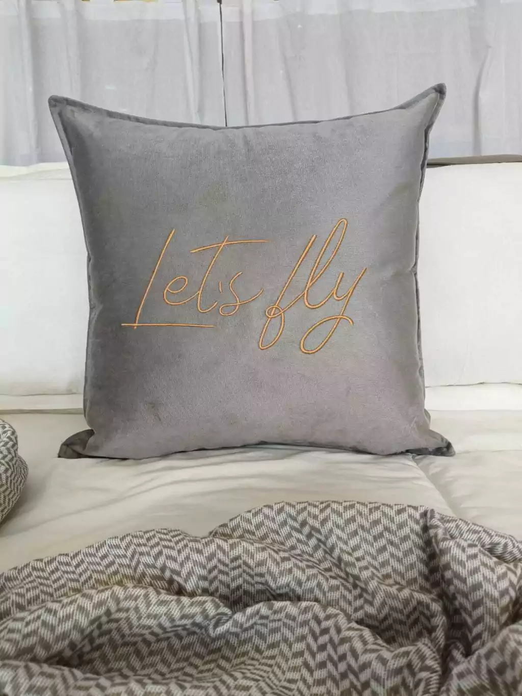 Dale un toque especial a tu espacio con nuestro Almohadón de Pana. Su diseño elegante y la frase bordada "LETS FLY" aportan una sensación de libertad y estilo a cualquier ambiente.