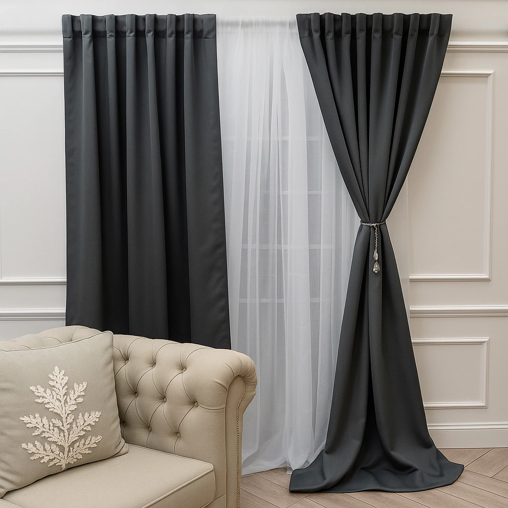 Transforma tu espacio con nuestras cortinas blackout. Diseñadas para bloquear la luz solar, estas cortinas son perfectas para regular la temperatura de tu habitación, ayudando a aislar el calor y el sonido.