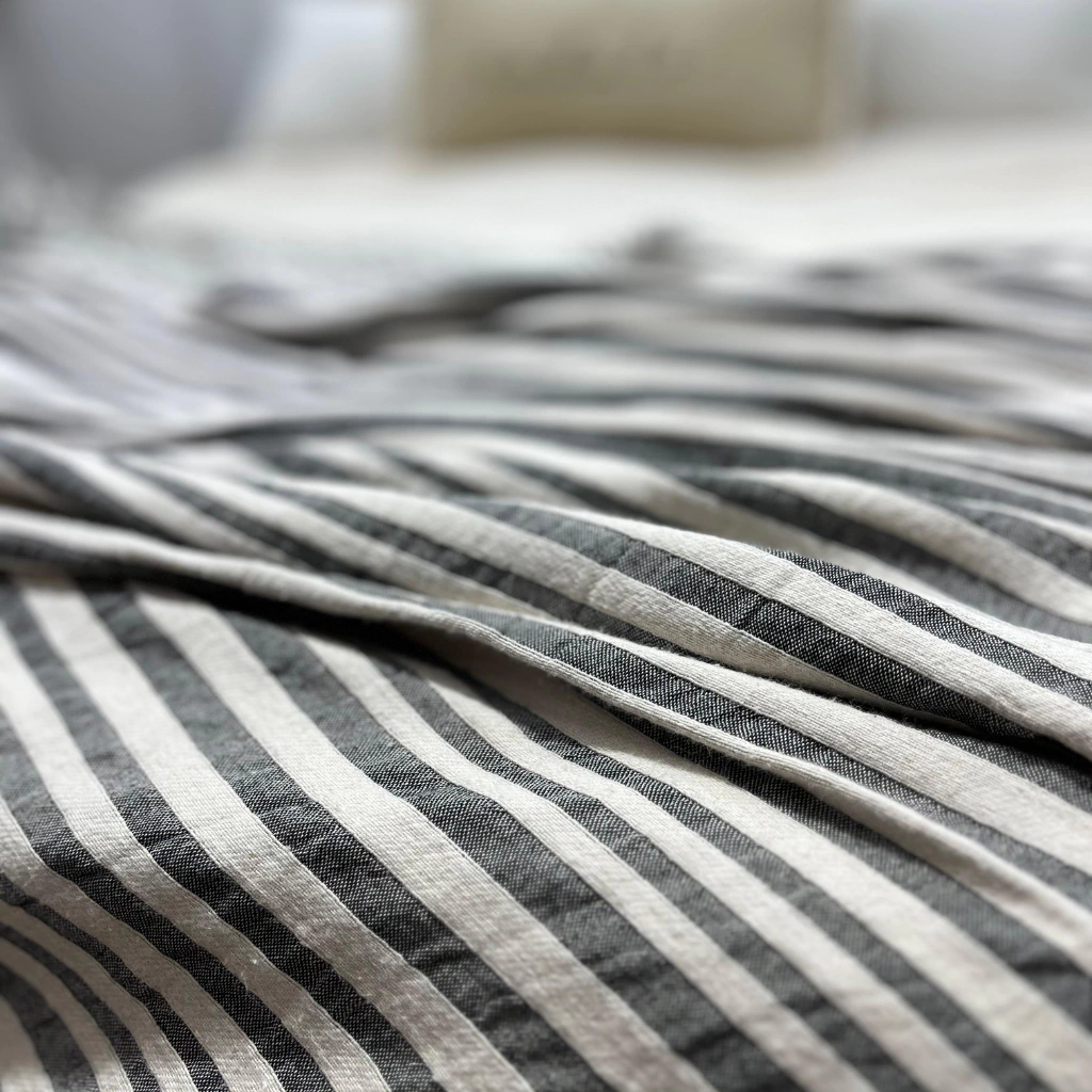 Un diseño rayado clásico y versátil, confeccionado íntegramente en algodón. Disponible en todas las medidas, es ideal para usar en cualquier estación del año. Su amplitud te asegura una cobertura completa de la cama, brindando comodidad y frescura con un estilo atemporal.