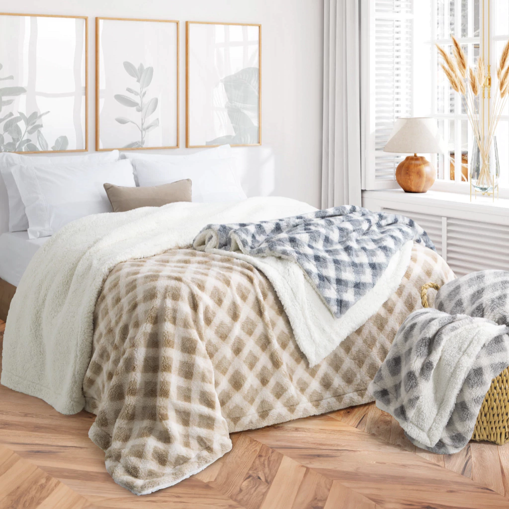 - Doble Corderito: Con un lado de corderito estampado y otro de corderito liso, esta frazada ofrece el equilibrio perfecto entre confort y un diseño atractivo.