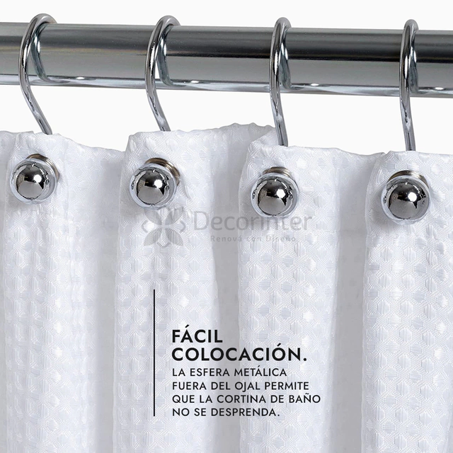 Cuenta con una esfera en la parte inferior que previene la caída de la cortina de baño y el protector.