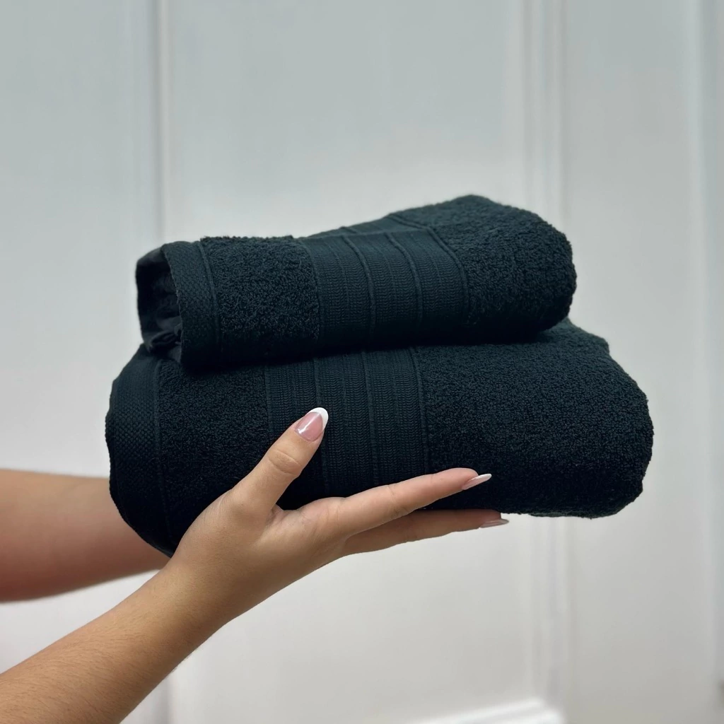 Juego de Toalla y Toallón Arciel Negro 500 Grs. CON PACKAGING