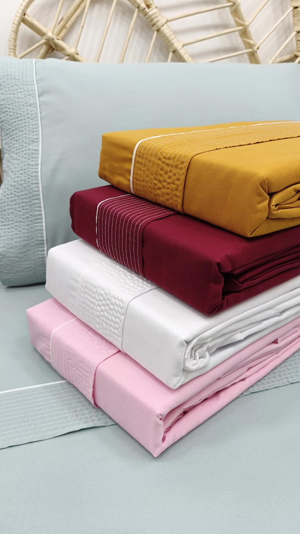 Transforma tu dormitorio en un oasis de confort con nuestro Juego de Sábanas Queen. Hecho de microfibra de 90grs y con 180 hilos, ofrece una suavidad inigualable.