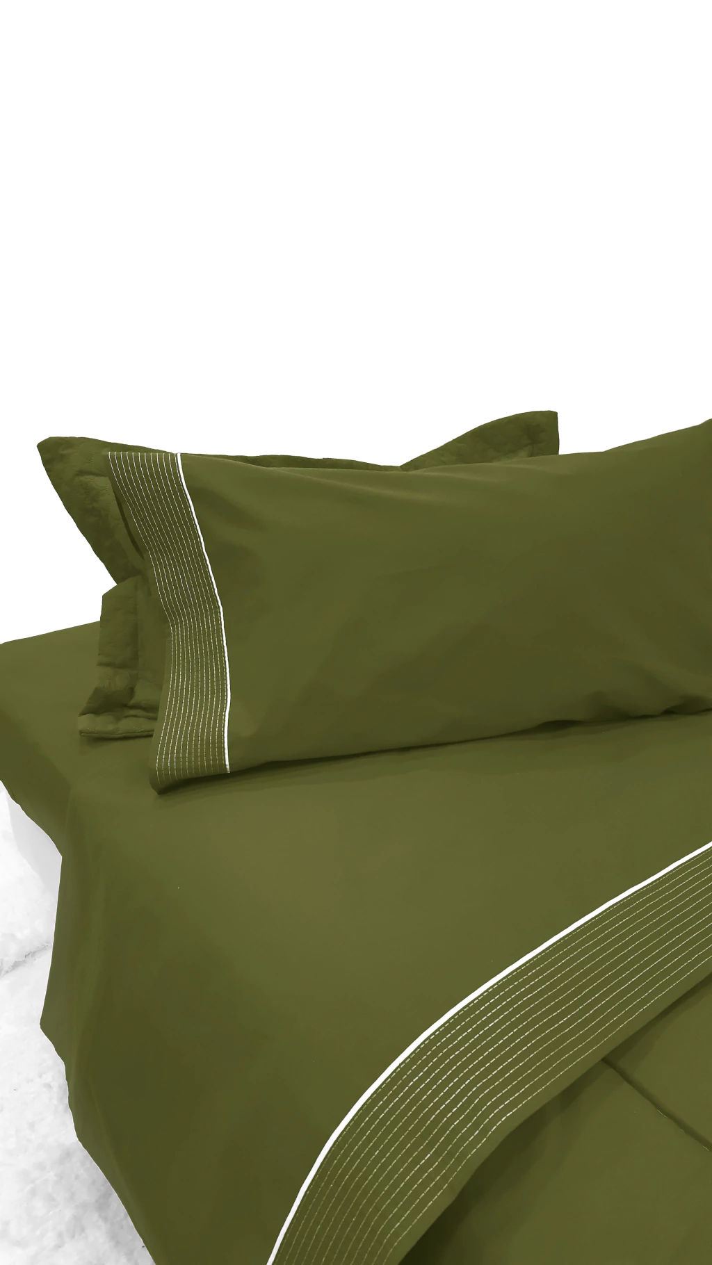 Este juego incluye sabana plana, sabana ajustable y dos fundas de almohada, ideal para camas de 160 x 200 x 30cm. La terminación multiaguja asegura durabilidad y un acabado elegante. ¡Descansa en la calidad que mereces!